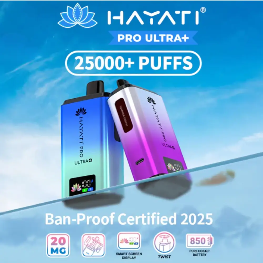 The Hayati Pro Ultra Plus 25000 offers a premium, low-maintenance solution that’s both TPD compliant and future-ready, a next-generation device engineered for vapers who demand maximum puff count, flavour variety, and modern convenience.